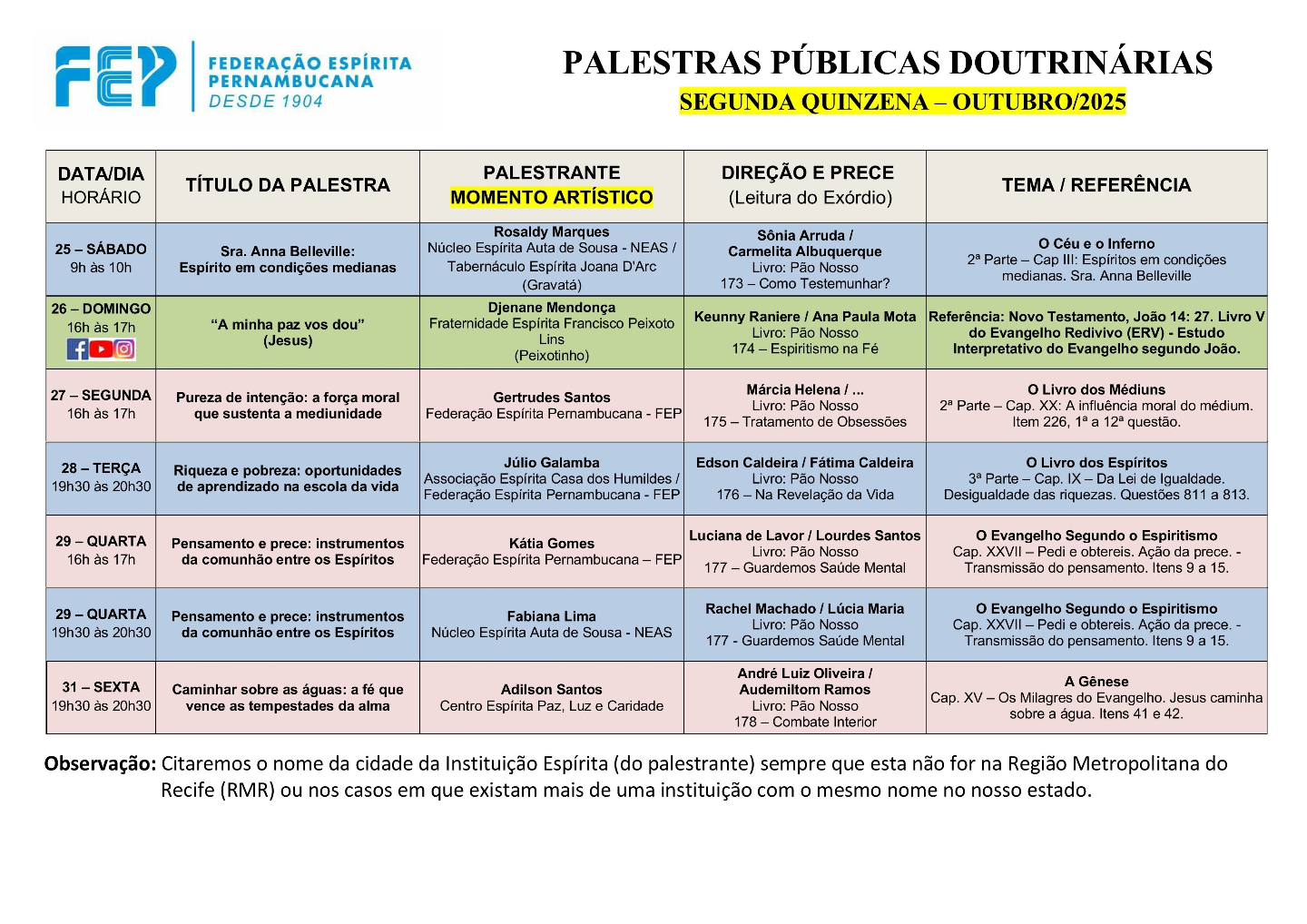 Trabalharemos temas pertinentes à consolidação do movimento espírita pernambucano.