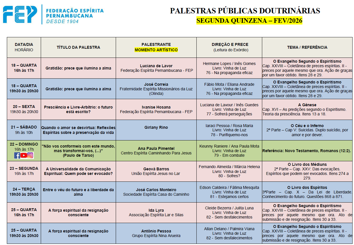 A FEP divulga a programação das REUNIÕES PÚBLICAS PRESENCIAIS a serem realizadas na primeira quinzena do mês de novembro de 2023, no auditório Lírio Ferreira.