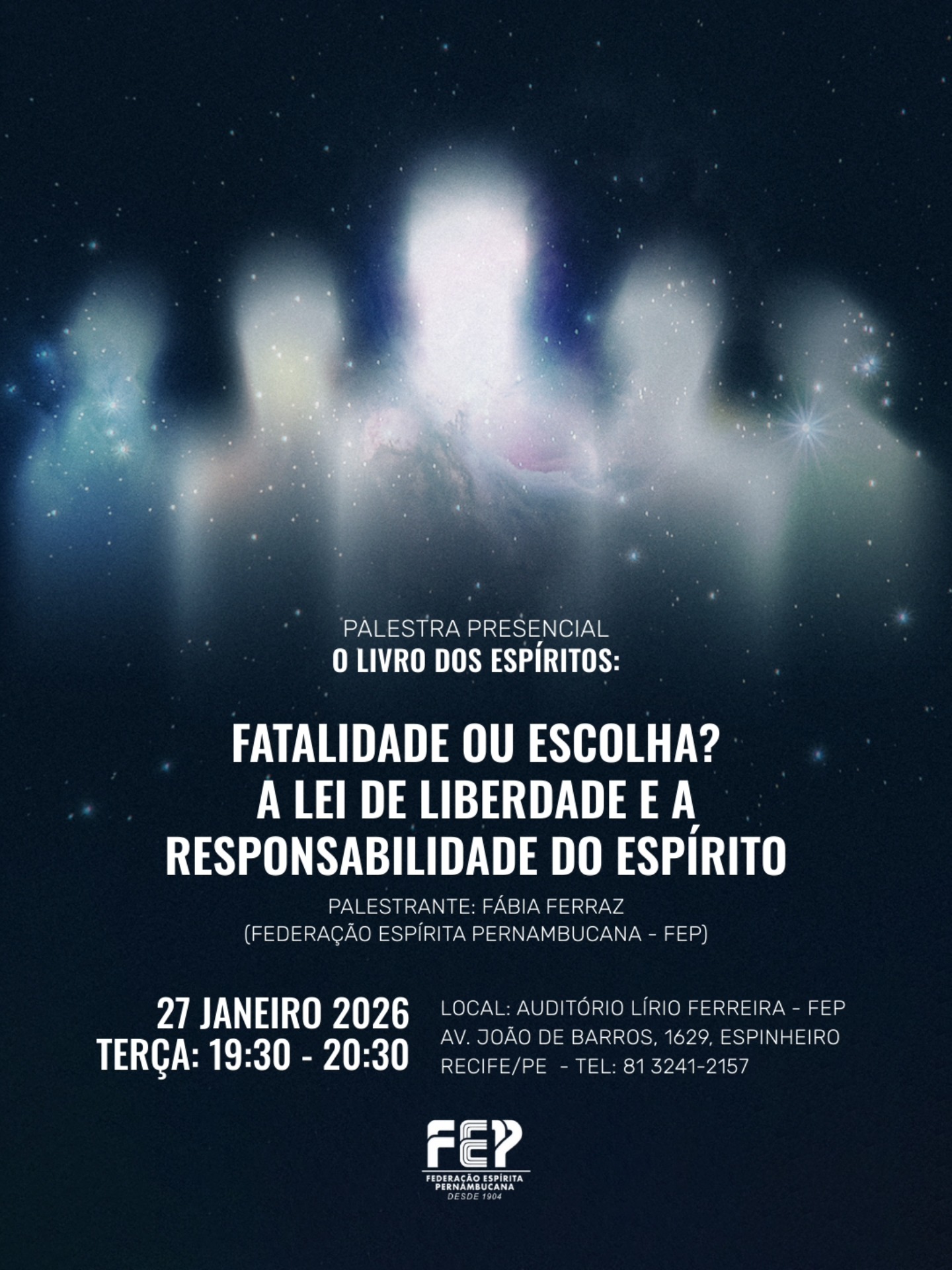 Palestra Pública FEP – Terça-Feira, 31 de Dezembro 2024 – 19h30 às 20h30