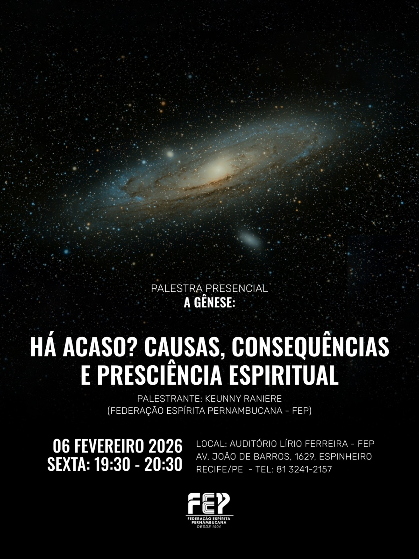 Palestra Pública FEP – Sexta-Feira, 07 de Fevereiro de 2025 – 19h30 às 20h30
