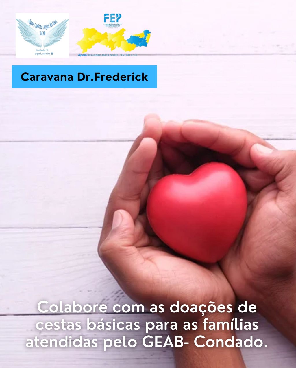 No dia 07/02/2026, a Caravana do amor e do serviço chegará a Condado para levar apoio às famílias atendidas pelo Grupo Espírita Anjos do Bem, em parceria com a Caravana do Dr Frederick.
