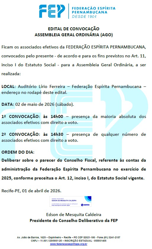 Destaque Público DECOM FEP quarta-feira, 01/04/2026 “EDITAL DE CONVOCAÇÃO ASSEMBLEIA GERAL ORDINÁRIA (AGO)” – 02/05/2026