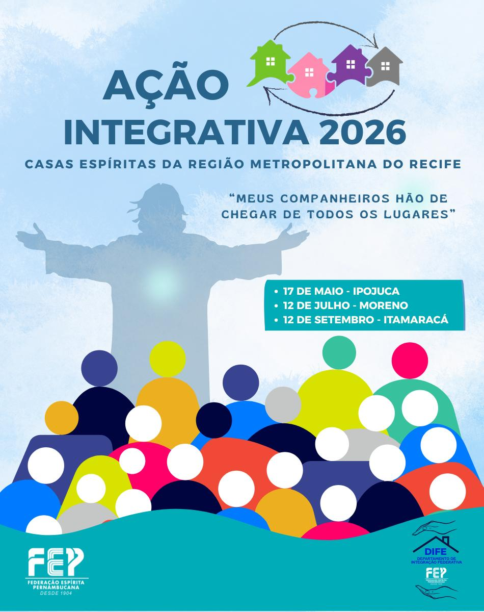 A FEP divulga a Agenda 2026 do Movimento Espírita de Pernambuco. São inúmeras atividades – reuniões, formações, palestras, seminários e eventos comemorativos, dentre outros, programados para cada mês do ano, e que serão realizadas de forma virtual e/ou presencial.