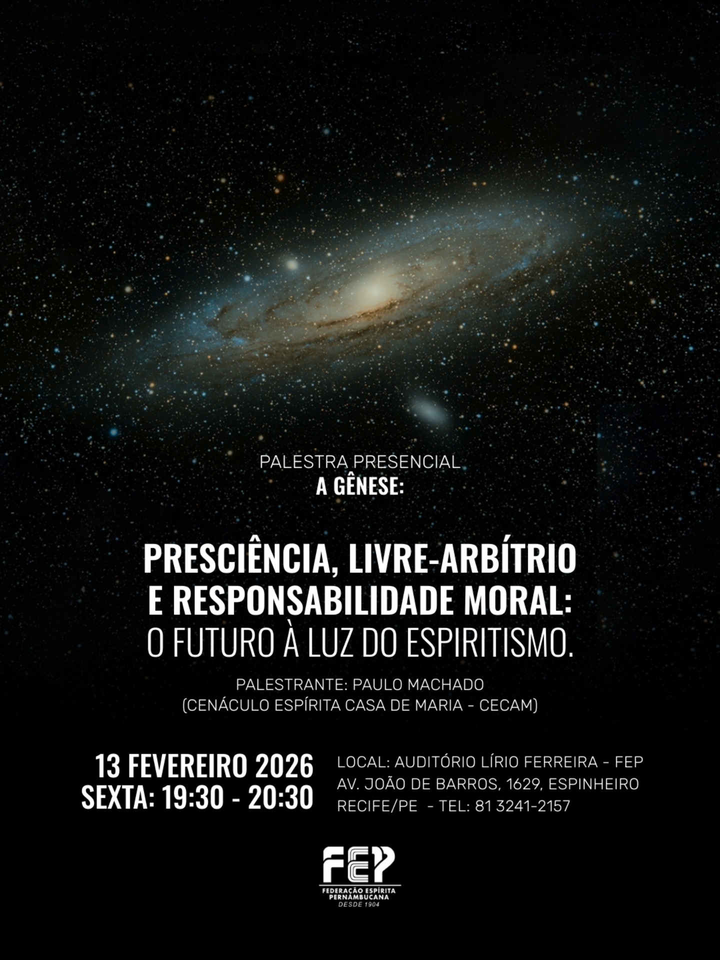 Palestra Pública FEP – Terça-Feira, 07 de Novembro 2023 – 19h30 às 20h30